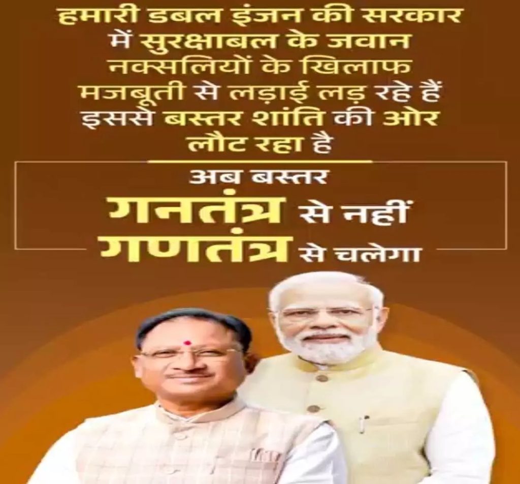 Vachannews रायपुर : हमारी डबल इंजन की सरकार में सुरक्षाबल के जवान नक्सलियों के खिलाफ मजबूती से लड़ाई लड़ रहे हैं, इससे बस्तर शांति की ओर लौट रहा है। मुख्यमंत्री विष्णुदेव साय के नेतृत्व में राज्य सरकार ने नक्सल उन्मूलन के प्रयासों में ऐतिहासिक सफलता प्राप्त की है। सरकार द्वारा लागू की गई प्रभावी नीतियों और विकासोन्मुखी दृष्टिकोण ने राज्य में स्थायी शांति और सुरक्षा का माहौल बनाया है। मुख्यमंत्री श्री साय ने कहा कि हमारी डबल इंजन की सरकार के नेतृत्व में प्रदेश में बीते 13 महीनों में 305 नक्सली मारे जा चुके हैं, 1177 नक्सलियों को