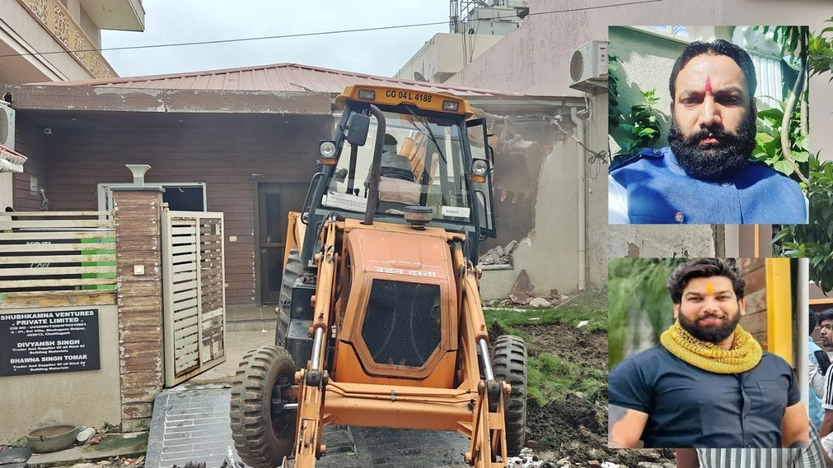 रायपुर। लंबे समय से फरार चल रहे कुख्यात हिस्ट्रीशीटर और सूदखोर रोहित व वीरेंद्र तोमर के खिलाफ रविवार को प्रशासन ने बड़ी कार्रवाई की। पुलिस और नगर निगम की संयुक्त टीम ने भाठागांव स्थित उनके आलीशान आवास परिसर में बने अवैध दफ्तर को बुलडोजर से जमींदोज कर दिया।