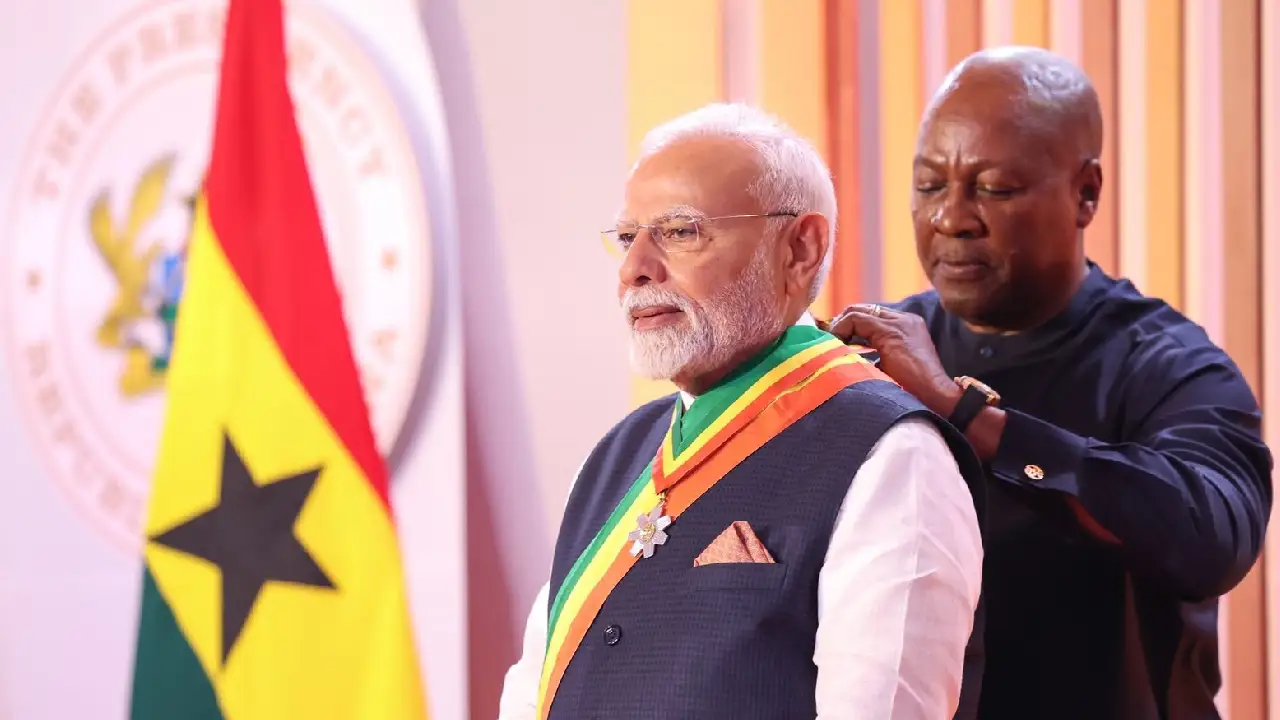 प्रधानमंत्री नरेंद्र मोदी को अफ्रीकी देश घाना ने अपने सर्वोच्च नागरिक सम्मान “Officer of the Order of the Star of Ghana” से सम्मानित किया है। यह सम्मान घाना की राजधानी अक्रा में आयोजित विशेष समारोह में राष्ट्रपति जॉन द्रामानी महामा द्वारा प्रदान किया गया।