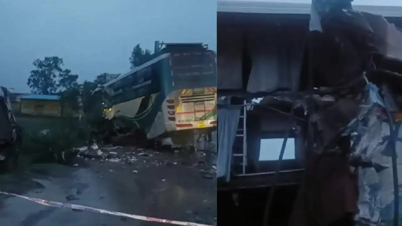 प्रत्यक्षदर्शियों के अनुसार हादसा सुबह करीब 4:00 बजे हुआ। टक्कर के बाद अफरा-तफरी मच गई। बस में तीन लोग बुरी तरह फंस गए थे—एक यात्री बस के पिछले पहिए के नीचे दब गया था जबकि दो अन्य यात्री बस के केबिन में फंसे रह गए। तीनों की घटनास्थल पर ही मौत हो गई।