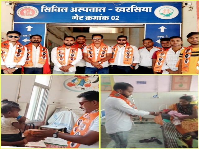 खरसिया: शिवसेना की खरसिया इकाई ने प्रदेश प्रमुख के जन्मदिन के अवसर पर मरीजों और जरूरतमंदों की सेवा कर इसे विशेष रूप से मनाया। विधानसभा अध्यक्ष पिंटू यादव के नेतृत्व में कार्यकर्ता सिविल अस्पताल, खरसिया पहुंचे और वहां भर्ती मरीजों को फल, बिस्किट और अन्य खाद्य सामग्री वितरित की। इस दौरान उन्होंने मरीजों से हालचाल जाना और किसी भी समस्या में सहयोग का आश्वासन दिया।