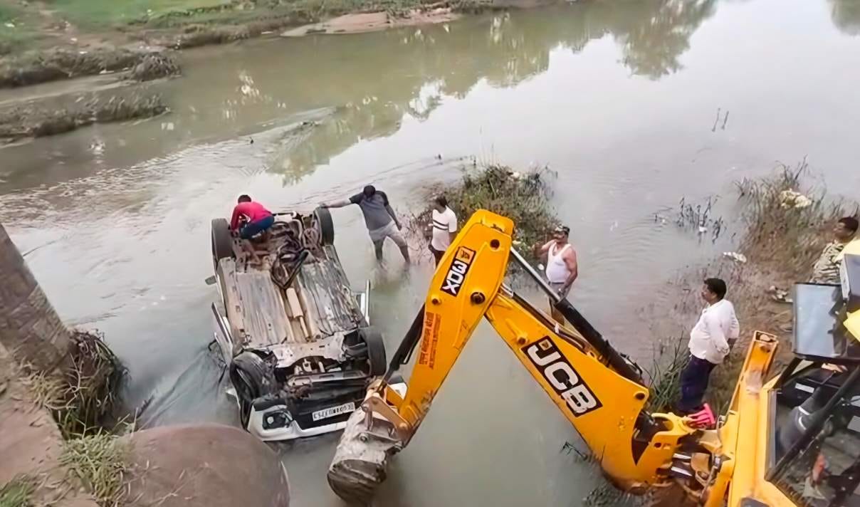 भूतेश्वरनाथ दर्शन को जा रहे युवकों की कार नाले में पलटी, दो की मौत, तीन घायल